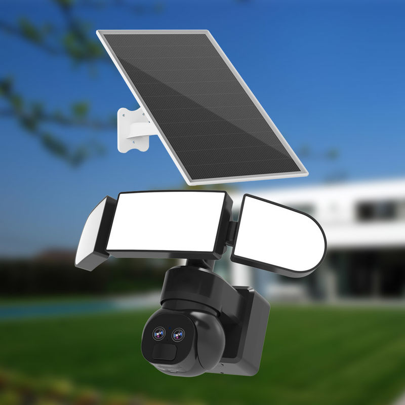 Δύο φακούς WiFi Ηλιακή κάμερα ασφαλείας 12X Υβριδική συσκευή αποθήκευσης cloud 150W Ηλιακή κάμερα LED